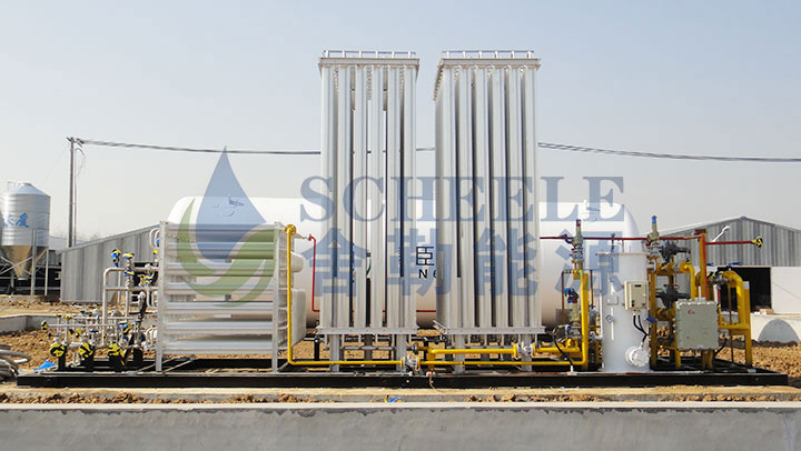 橇裝式供氣終端是針對城鎮獨立居民小區、中小型業用戶和大中型公建用戶月用氣需求而開發的天然氣供系統,除LNG儲罐外的所有功能元件集成于橇座上,整個系統占地面積小,制造周期短,現場安裝方便快捷;整個系統的設計、制造、檢測、調試及售后服務由專業制造商完成,可靠便捷。現在場安裝工作量少,只有進出口管道連接以及外部電氣的連接,操作維護方便,使用安全可靠,并可以實現遠程遙控,無需現場值守。